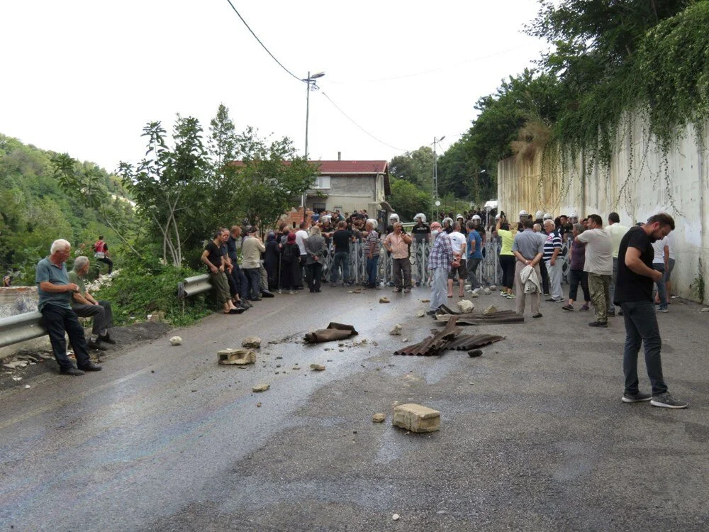 Çevik kuvvet ekipleri ile yola barikat kuranlar arasında gerginlik yaşandı. Polis, mahalleliyi dağıtmak için müdahalede bulundu.