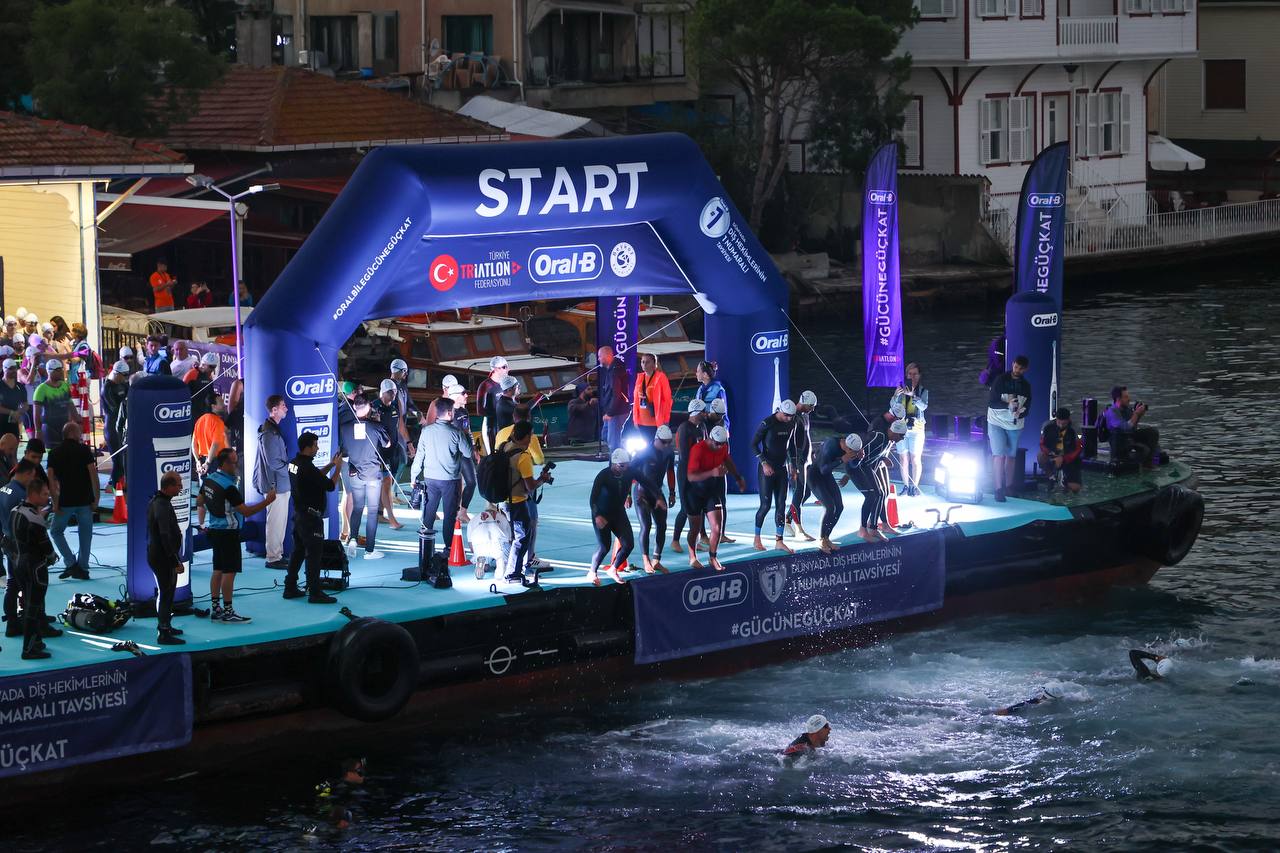 Sporcuların güç ve koordinasyon gerektiren mücadelesi, sabahın erken saatlerinde Kanlıca-Küçüksu arasındaki 2.3 kilometrelik yüzme etabıyla başladı.