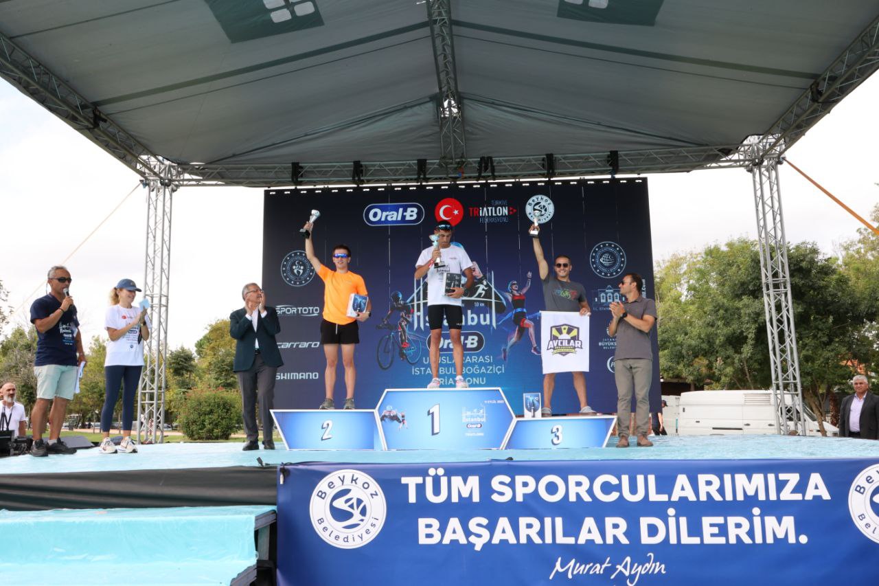 Şampiyonlara madalya kupalarını yarışları izleyen Beykoz Belediye Başkanı Murat Aydın, İstanbul Gençlik ve Spor İl Müdürü Burhanettin Hacıcaferoğlu ve Türkiye Triatlon Federasyonu Başkanı Bayram Yalçınkaya verdi.
