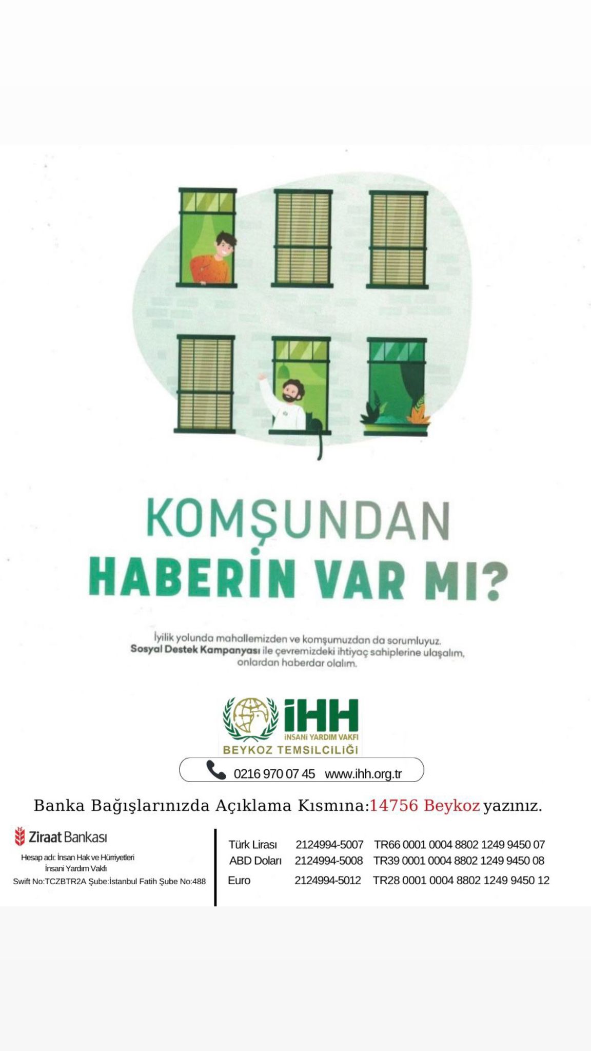 İHH Beykoz Temsilciliği; Beykozlu ihtiyaç sahiplerine ulaşmak için başlatmış olduğu yardım seferberliğini “KOMŞUNDAN HABERİN VAR MI?” Temasıyla genişletme kararı aldı.