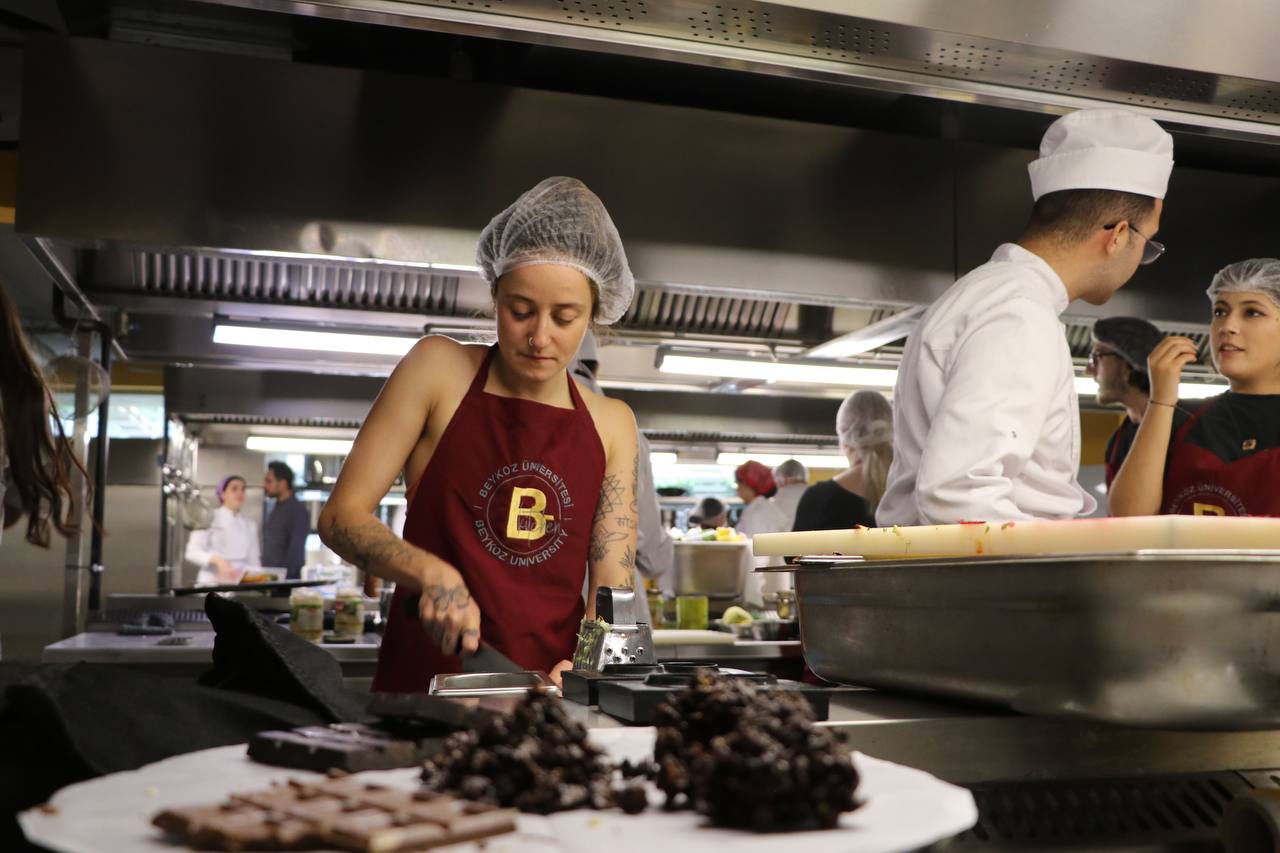 Beykoz Üniversitesi Gastronomi ve Mutfak Sanatları Mutfağı’nda organik beslenmeye dikkat çekmek için yapılan organizasyonda misafir gençler, ilçedeki kent tarımı tesislerinde yetişen doğal sebzelerle ülkelerine özgü yemekler hazırladı.