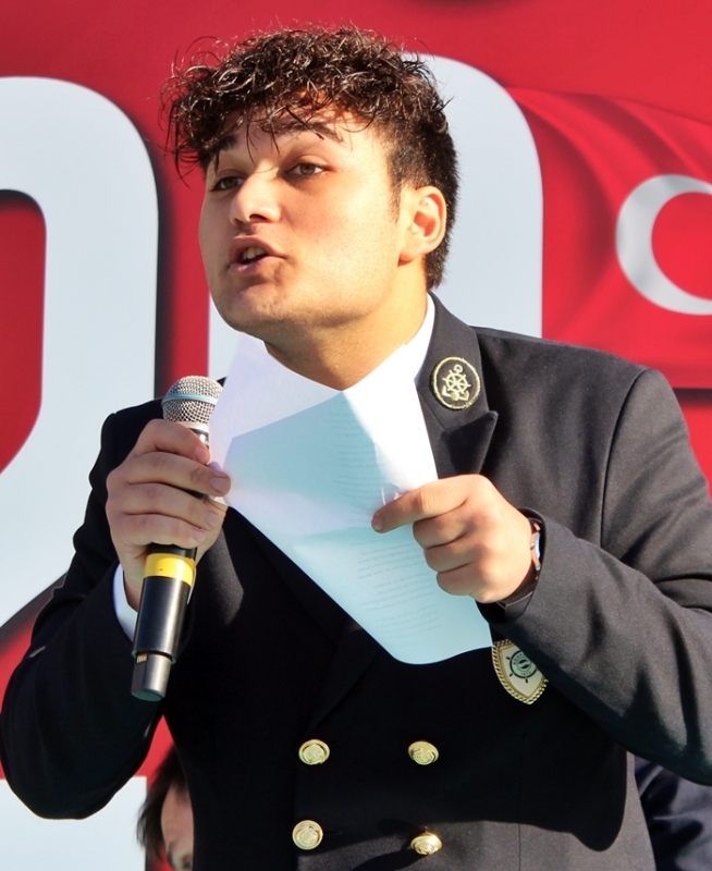Protokol konuşmasının ardından sahneye mehter takımı gelerek, bir gösteri gerçekleştirdi. Etkinlik, Barbaros Hayrettin Paşa Mesleki ve Teknik Anadolu Lisesi Tarih Öğretmeni Sinan Saim Aydın’ın 29 Ekim temalı konuşmasıyla devam etti.
