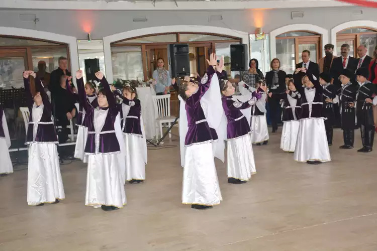 Mesleğe yeni başlayan öğretmenlerinde yemin ettiği programda, çeşitli okulların halk oyunları ekipleri gösteriler yaptı.