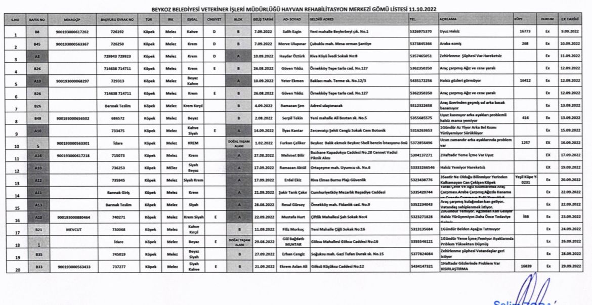 Beykoz’da yaklaşık 30 bin sahipsiz köpek ve 10 bin kedi bulunmaktadır. Bu hayvanlar araba çarpması, birbirleriyle kavga ederken aldıkları ağır yaralanmalar, hastalıklar gibi sair sebepler dolayısıyla can vermektedir.