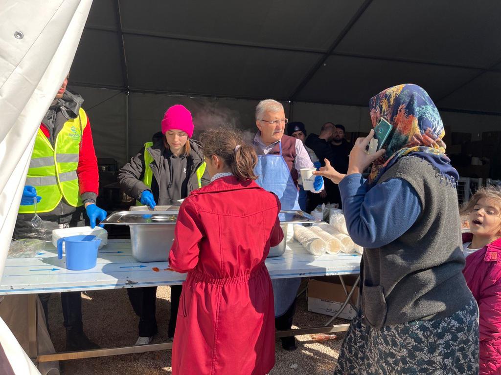 İlçeden gönderilen yardımları koordine etmek ve çalışmaları incelemek üzere Hatay Kırıkhan ’da bulunan Beykoz Belediye Başkanı Murat Aydın, aşevinde depremzedelere çorba ve yemek ikram ediyor, geçmiş olsun dileklerini iletiyor.