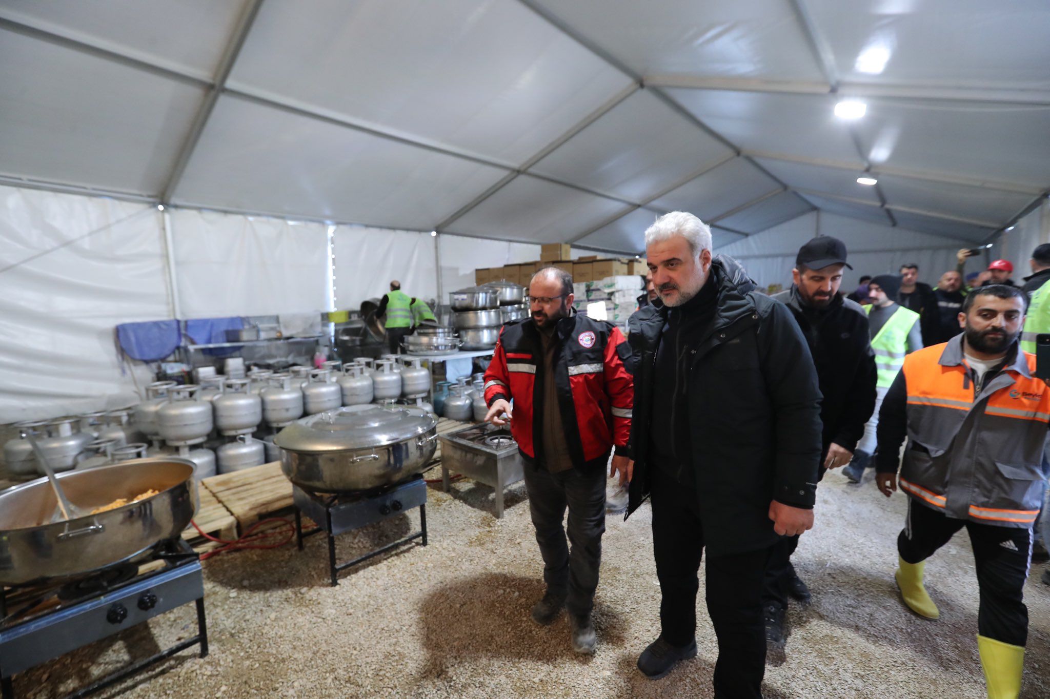 Günde yaklaşık 10 bin kişiye sıcak yemek ikramının yapıldığı Hatay’daki aşevinde incelemelerde bulunan Osman Nuri Kabaktepe, yetkililerle görüşüp çalışmalar hakkında bilgi aldı. Kabaktepe, işçi ve gönüllülerle bir araya gelip emekleri için teşekkürlerini iletti.