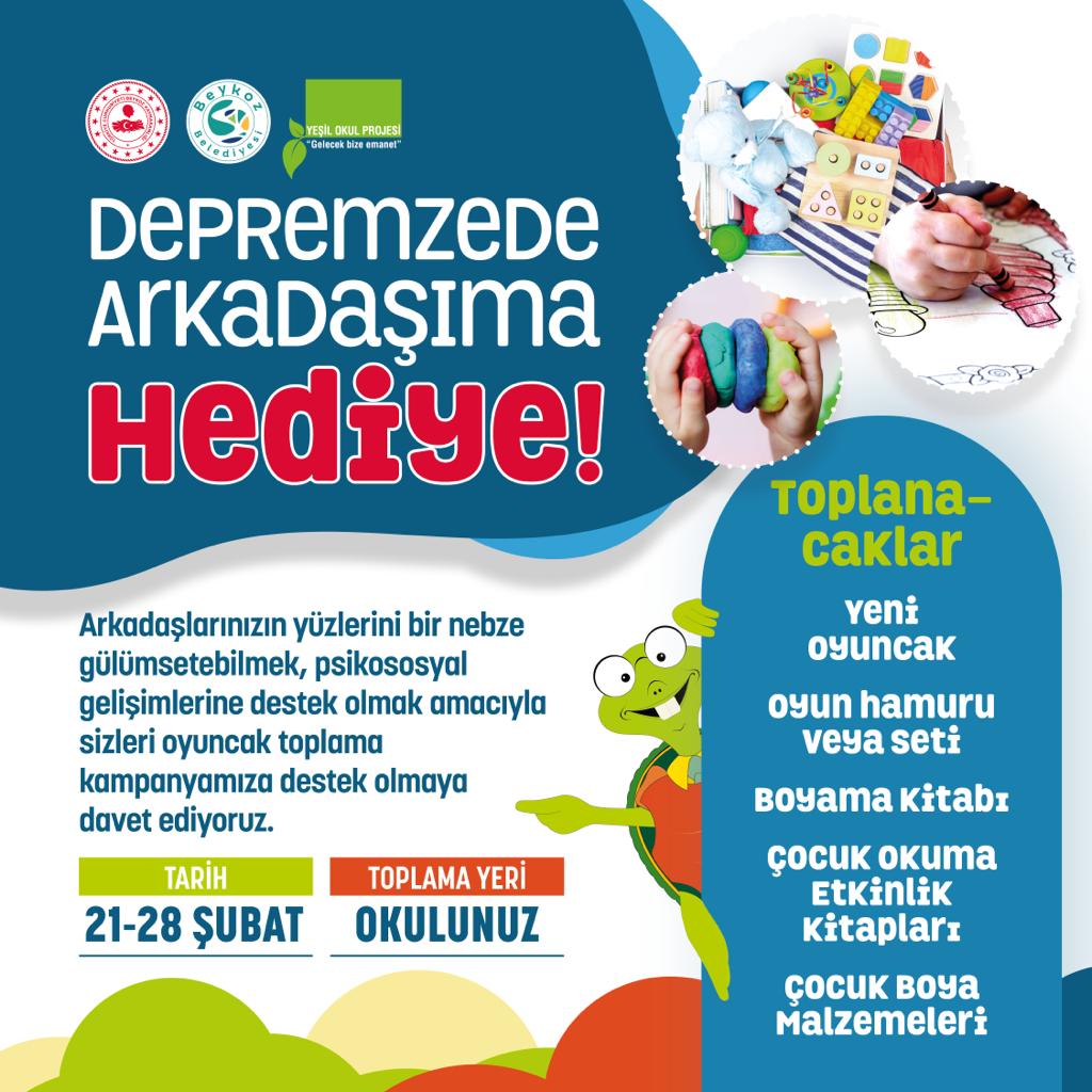 Beykoz’da, Kahramanmaraş merkezli depremden etkilenen çocuklara yaşam sevinci aşılayacak, “Depremzede Arkadaşıma Hediye” (21-28 Şubat) oyuncak kampanyası başladı.