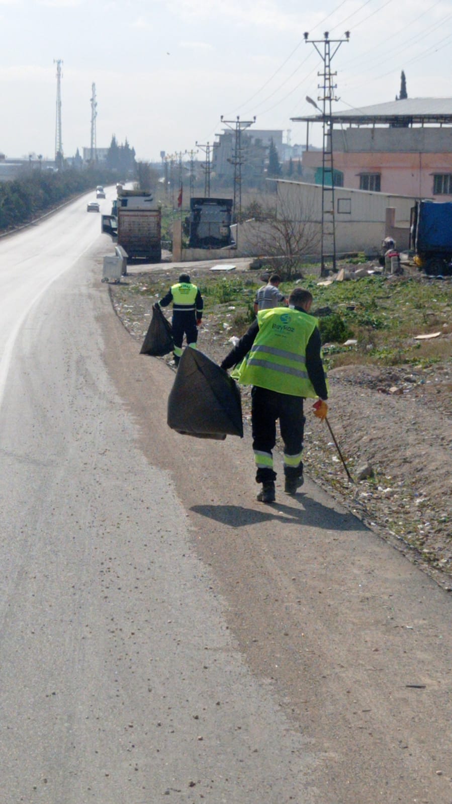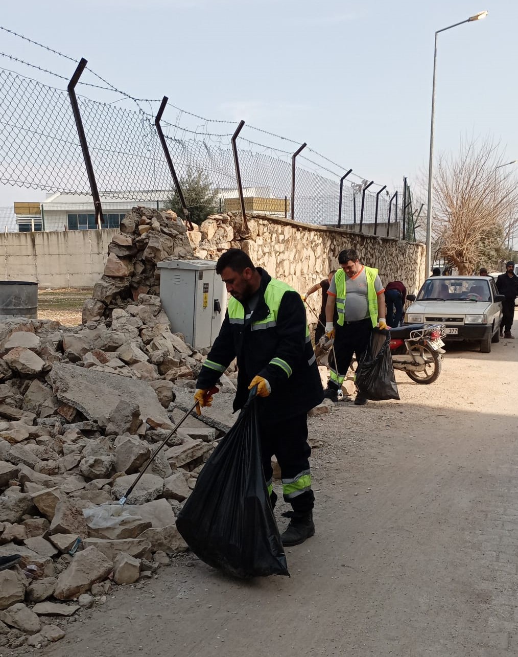 32 personel, 3 iş makinası, 2 tır, 4 çöp kamyonu, 1 kullanma suyu için arazöz, 1 içme suyu tankeri ve 1 çift kabinli kamyonet olmak üzere toplam 12 araçla temizlik işlerini yürüten ekipler, düzenli olarak çöp ve atıkları topluyor, sokakları süpürüyor.