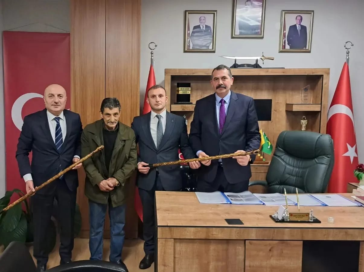 MHP İstanbul İl Başkanı Sertel Selim’e İlçe Başkanı Emre Çömlekçi çeşitli hediyeler verdi. MHP Beykoz İlçe Başkanlığı’na teşekkür eden Başkan Selim, partililer ile hatıra fotoğrafı çektirerek ilçe başkanlığından ayrıldı.