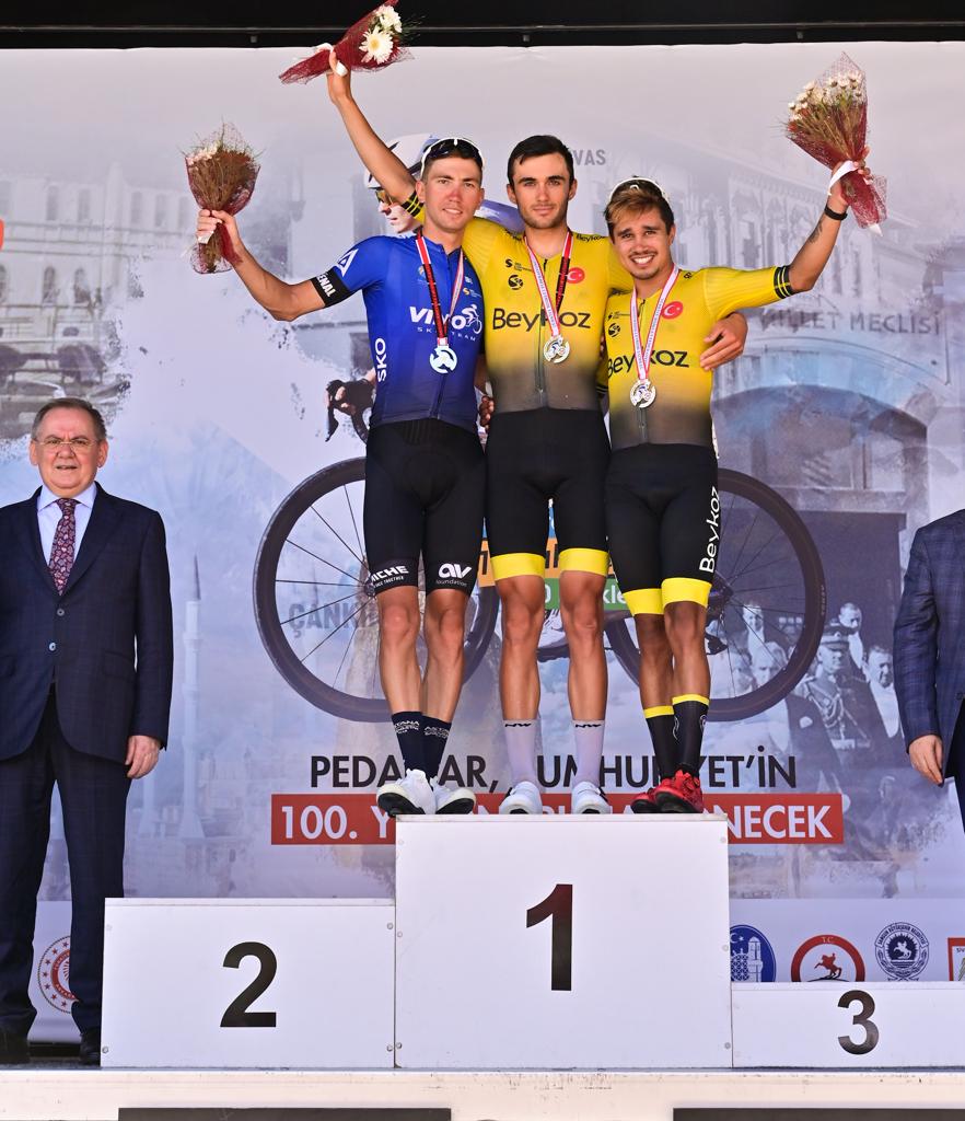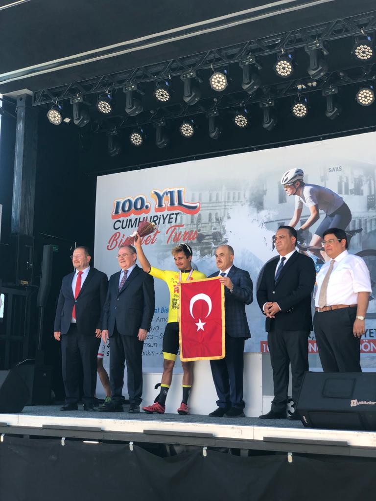 Türkiye Bisiklet Federasyonu tarafından, Cumhuriyetin 100. yılı onuruna Sivas’tan Ankara’ya düzenlenen 784 kilometrelik uluslararası “100. Yıl Cumhuriyet Bisiklet Turu”nda şampiyonluk heyecanı sürüyor.