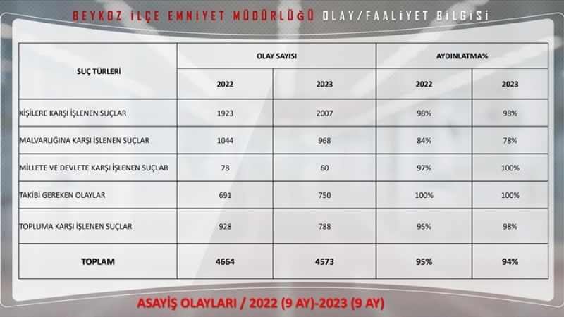 Soru cevap bölümünün de yapıldığı toplantıda paylaşılan asayiş verileri şu şekilde sıralandı: