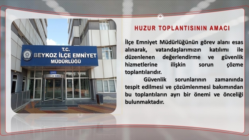 Beykoz İlçe Emniyet Müdürlüğü’nün her yıl kamuoyunu bilgilendirmek amacıyla hazırlamış olduğu huzur toplantısı yapıldı.