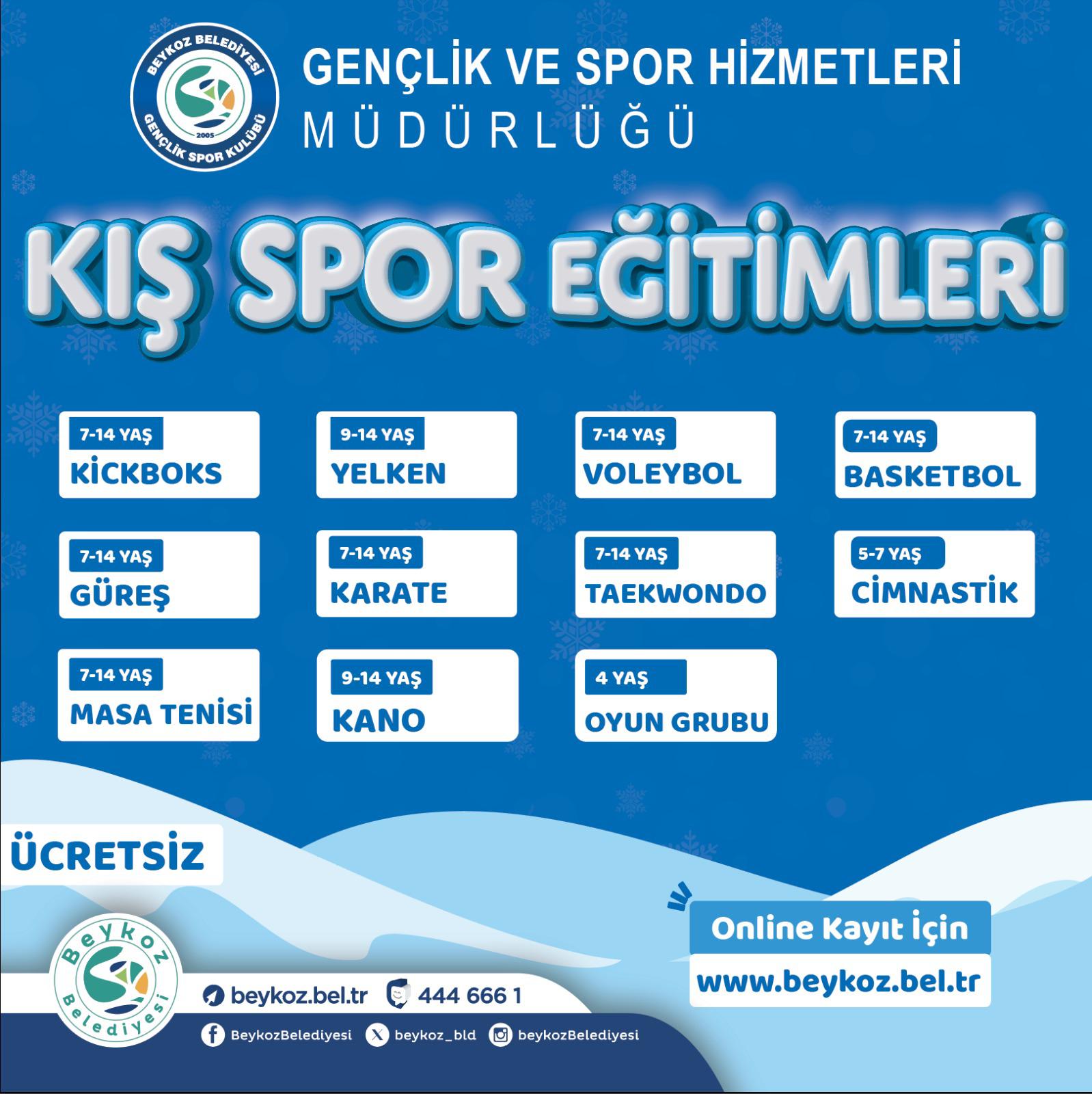 “Kış Spor Eğitimleri” nden yararlanmak isteyenler ilgi alanlarına uygun 1 branşa  etkinlik.beykoz.bel.tr adresinden kayıt yaptırabilecek.