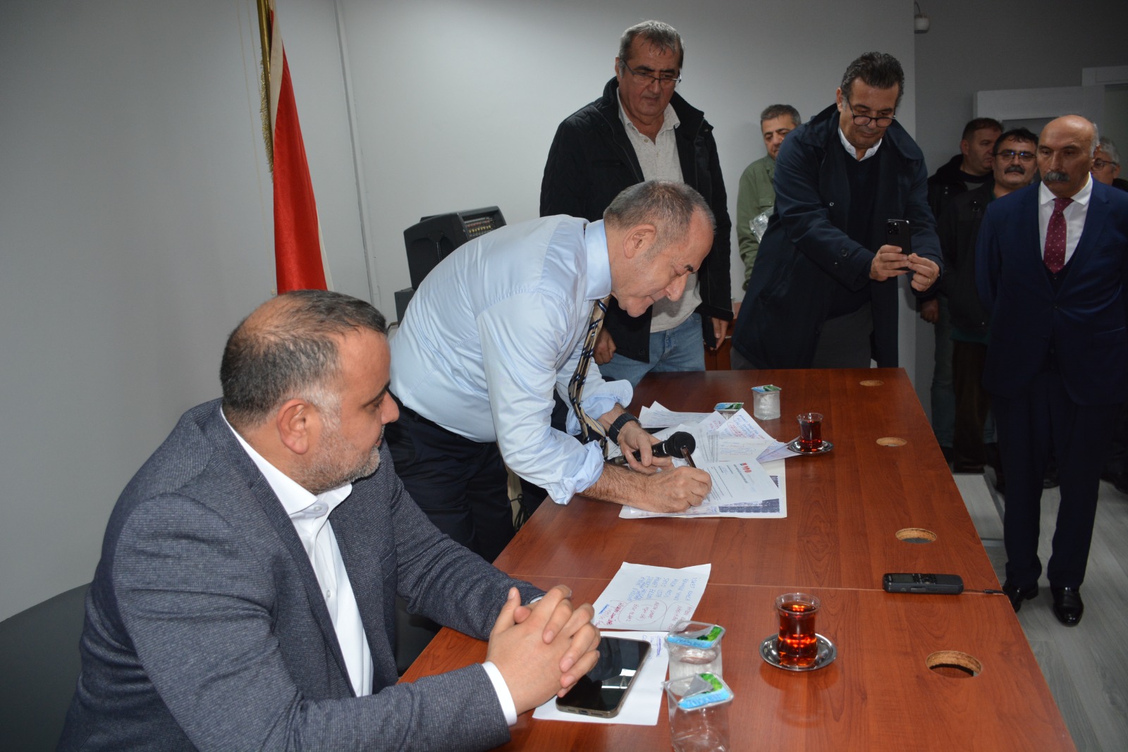 M. Akif Hamzaçebi, aday adaylığı başvuru dosyasını İlçe Başkanı Mahir Taştan’a teslim etti.