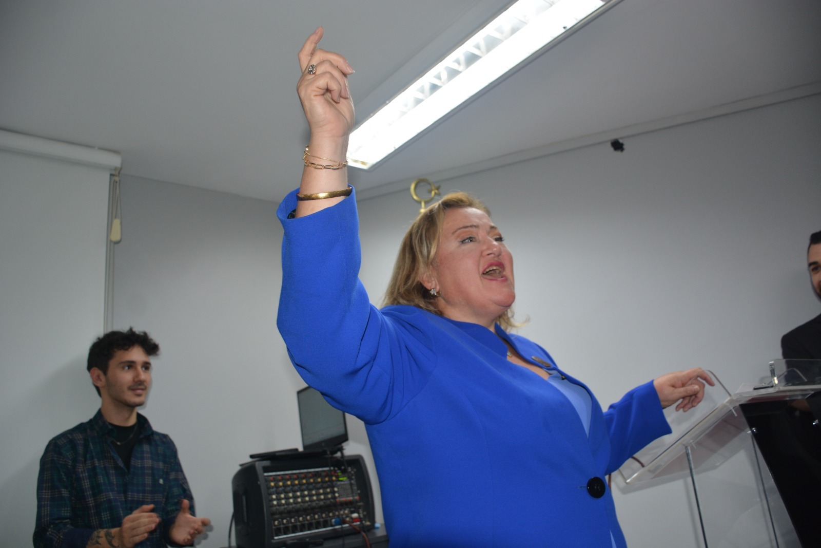 Belediye Başkan Aday Adayı Füsun Sökmez partililerin alkışlarıyla eşliğinde kürsüye geldi.
