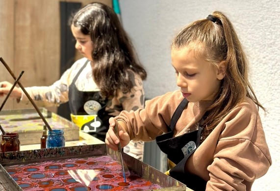 Merkezde ayrıca çocuklar için resim ve ebru dersleri de yapılıyor.