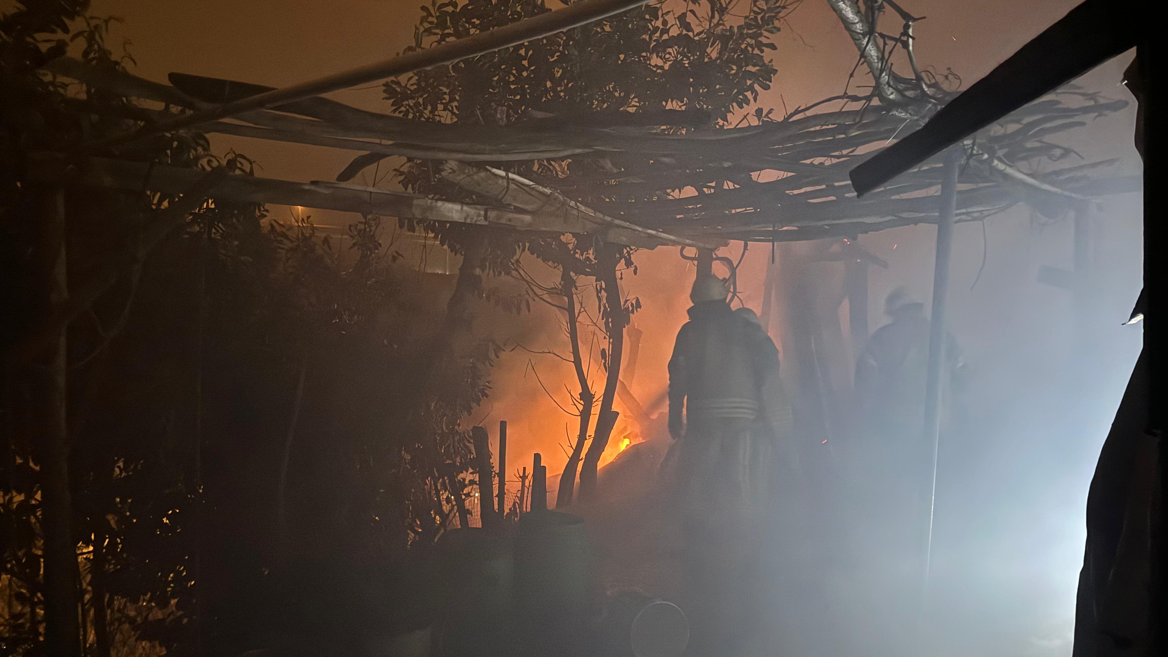 Yangının gecekondunun çevresindeki ekiplere sirayet etmesinin önlenmesinin ardından ekipler yangının bastırılması için çalışma başlattı.