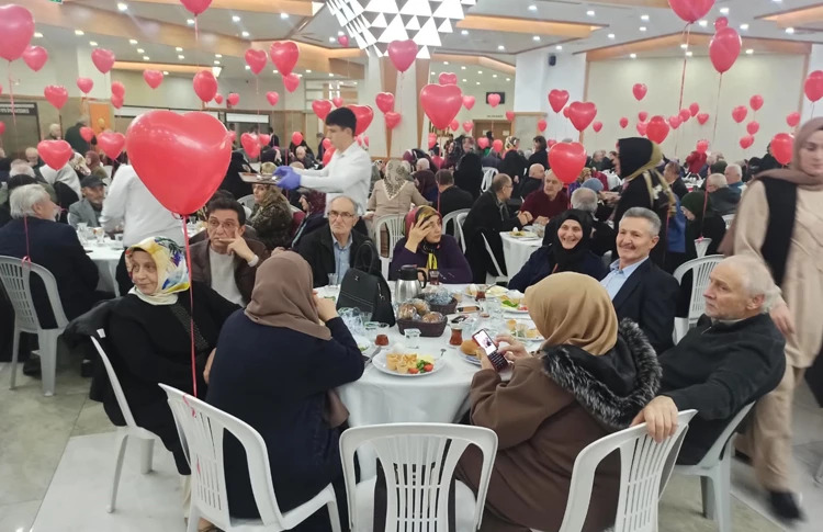 Oldukça geniş bir katılımım olduğu programda masalara kalp şeklinde balonlar asılırken program bitiminde ise misafirlere gül dağıtıldı.