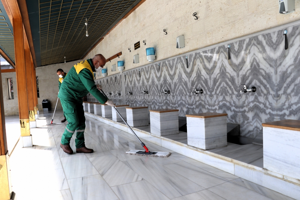 Merkezi noktalardaki 50 camide ise temizlik çalışmaları sabit personeller tarafından yapılıyor. Ziyaretçi yoğunluğu yaşanan 6 merkezi camide ise huzurlu ibadet için çift vardiya hizmet veriliyor.