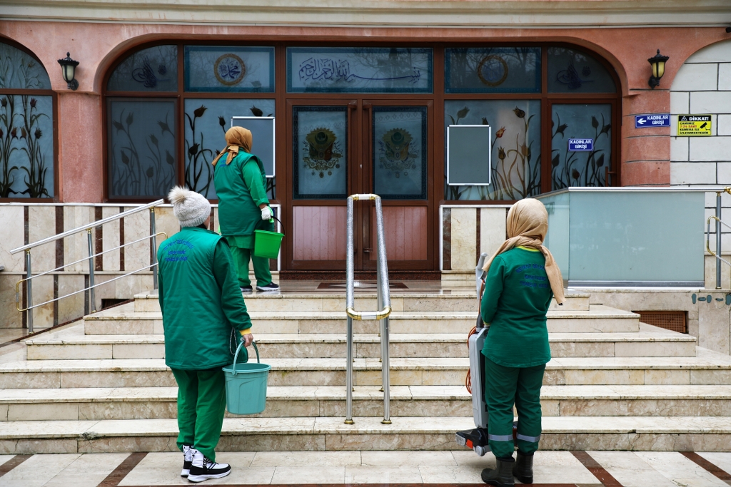 Haftalık periyotlarla ibadethaneleri ziyaret eden 4 mobil ekip, iç mekanları temizliyor, avlu ve şadırvanları yıkıyor, tuvaletlerin hijyenik ve bakımlı kalmasını sağlıyor.