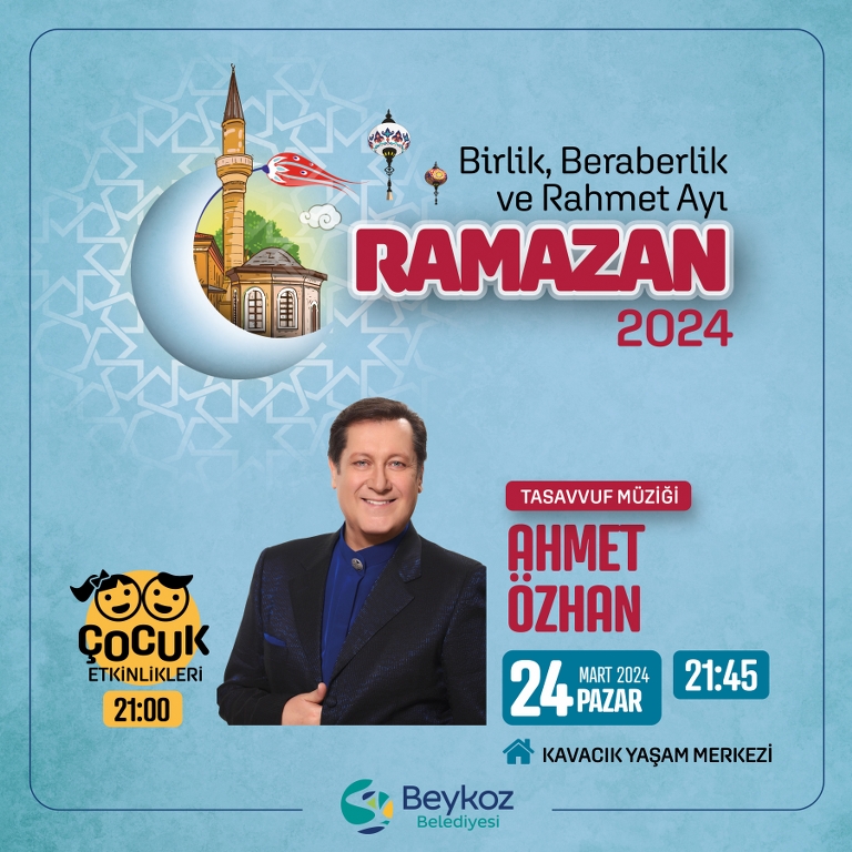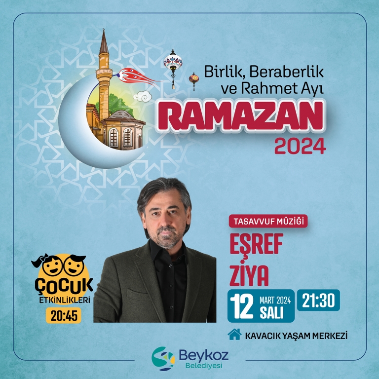 On bir Ayın Sultanı Ramazan Beykoz’da ilçe sahilinde kurulan “Ramazan Çadırı” ile Kavacık “Millet Sofrası”nda kardeşlik ve dayanışma iklimiyle yaşanacak, “Kavacık Yaşam Merkezi’nde ise söyleşiler, konserler ve çocuk eğlenceleri yer alacak.