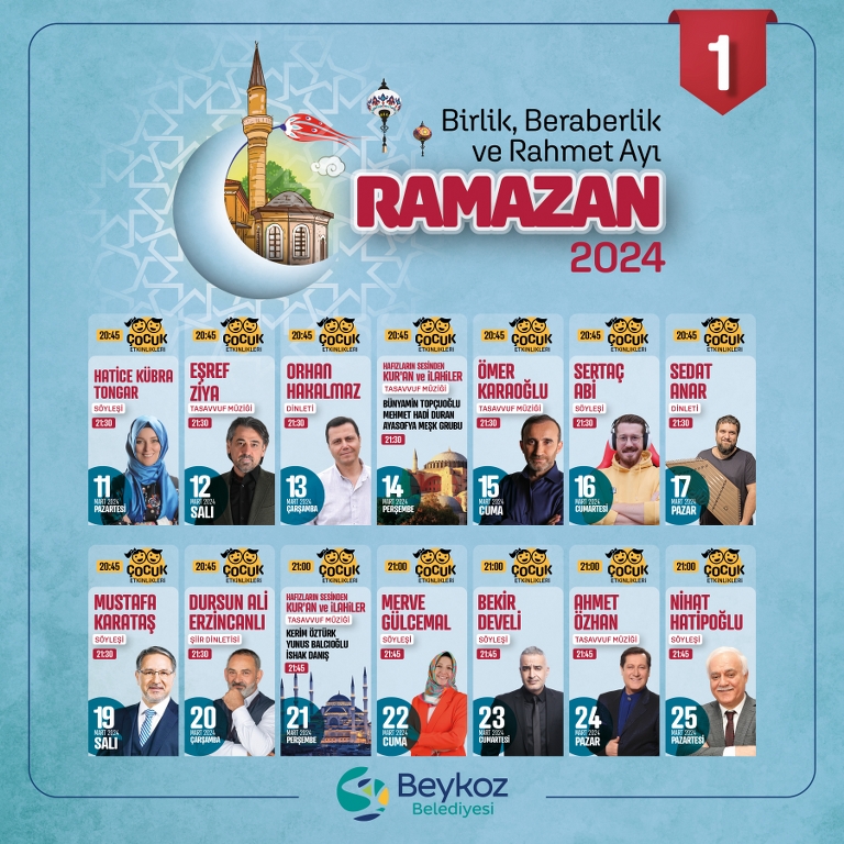 Beykoz Belediyesi, Ramazan Ayı’nın manevi güzelliklerinin toplumun tüm kesimlerini kuşatması için halka açık iftar sofralarından geleneksel çocuk eğlencelerine, sevilen ilahiyatçılarla söyleşiler, konser ve dinletilerin yer aldığı programlara kadar bir dizi hazırlık yaptı.