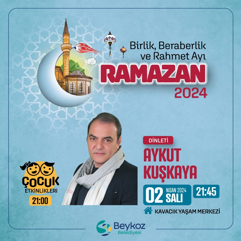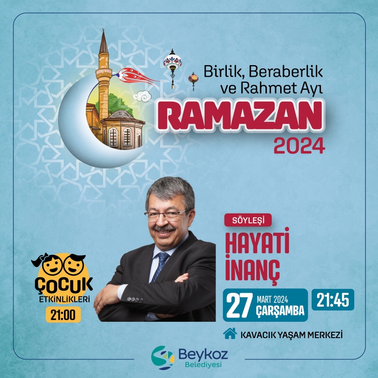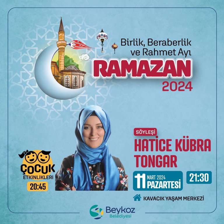 Ramazan Ayı boyunca Kavacık Yaşam Merkezi’nde sevilen ilahiyatçıların ağırlandığı söyleşiler, Kur’an-ı Kerim tilaveti, Tasavvuf Müziği konserleri ve şiir dinletileri yer alacak.