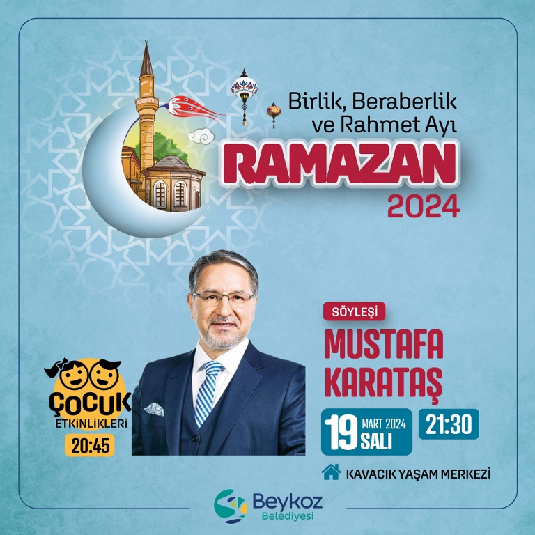 İlahiyat profesörü Mustafa Karataş ilçe sakinleriyle buluşacağı söyleşide Ramazan Ayı’nın insan ve topluma kazandırdığı maddi ve manevi hasletleri anlatacak.Çocuk kitapları ilgiyle takip edilen Yazar Merve Gülcemal, “Ramazan ve Çocuk” konulu renkli bir söyleşiyle ilçe sakinleriyle buluşacak, Televizyon Sunucusu Bekir Develi gündeme dair konulara değinecek.