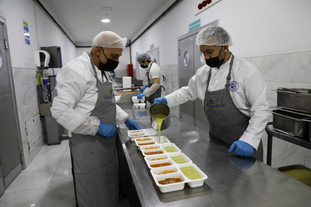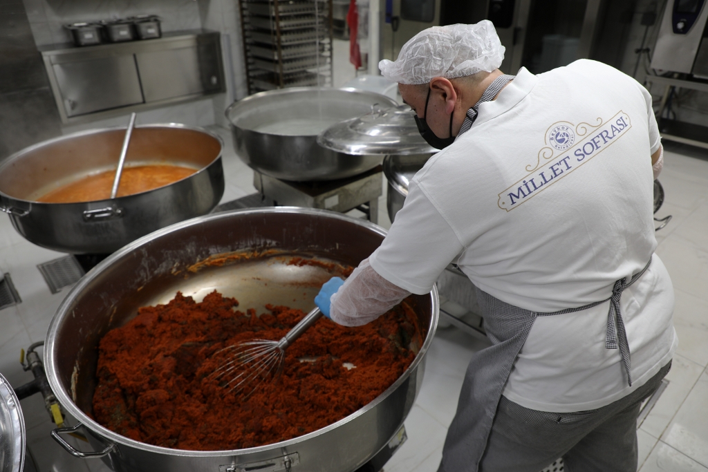 Millet Sofrası’nın mutfağında özenle pişen 4 çeşit yemek, öğlen ve akşam öğünü olarak hazırlanarak merkezden en uzağa kadar evlere teslim ediliyor.