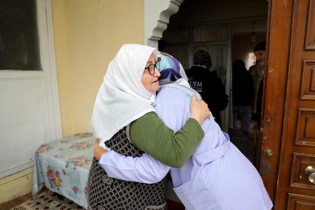 ‘Evde Sağlık Hizmeti’ veren uzman sağlık ekipleri ise her gün araçlarla yola çıkarak yaşlı kimselere hizmet veriyor.