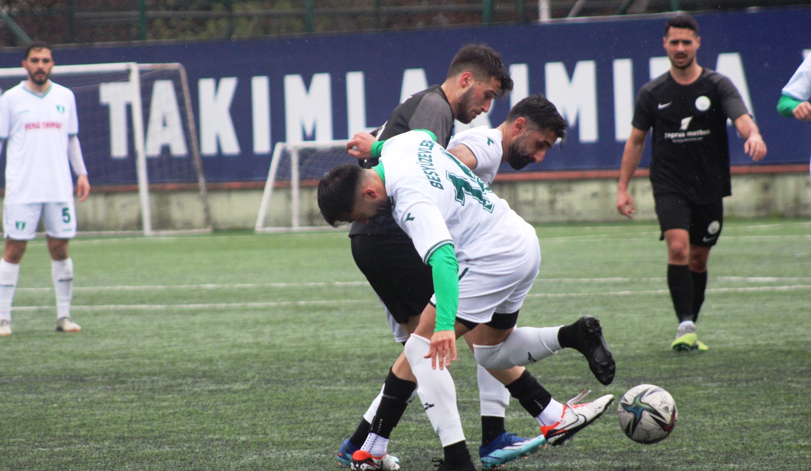 Dk.45 Beşyüzevler savunmasının hatasının ardından topla buluşan Arda Tuzluoğlu’nun yaptığı sert vuruşta savunma topun önüne geçip tehlikeli atağı savuşturdu.