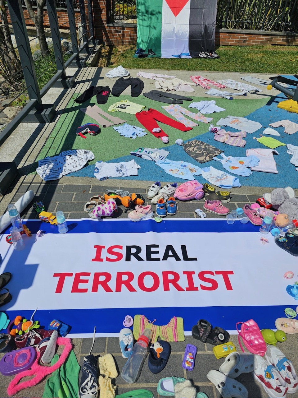 Organizasyonu düzenleyen ekipten aktivist-yönetmen Tülay Gökçimen alandan çektiği videoda “Çocuk katili terörist İsrail’in katlettiği çocukları temsilen Beykoz sahiline gördüğünüz gibi kıyafet koyduk. Her biri bir çocuğu temsil ediyor. Bugün saat 16’ya kadar Beykoz Sahilindeyiz.” diyerek vatandaşları davet etti.
