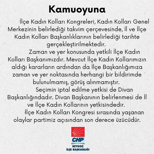 İlçe Kadın Kolları Kongresi sırasında yaşanan olaylar partimiz açısından son derece üzücüdür.