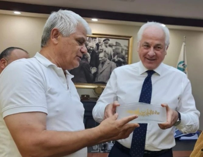 BEYMEZ’e çok amaçlı şehir kulübü formatında lokal kazandırılması noktasında ön mutabakatın sağlandığı ziyarette Dernek Başkanı Erdal Öztürk, Başkan Köseler’e özel koleksiyon üretim cam eserleri hediye etti.
