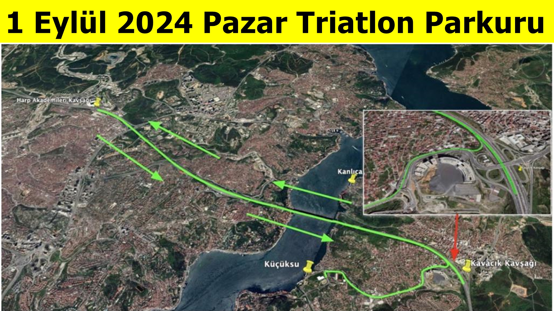Organizasyonun 1 Eylül Pazar günkü bisiklet etabı için 05:00-09:30 saatleri arasında, Küçüksu-Kavacık TEM bağlantı yolu kapatılacak. (Kavacık-Küçüksu geliş yönü kapatılacak, diğer yön Küçüksu-Kavacık yönü normal seyrine devam edecek.)