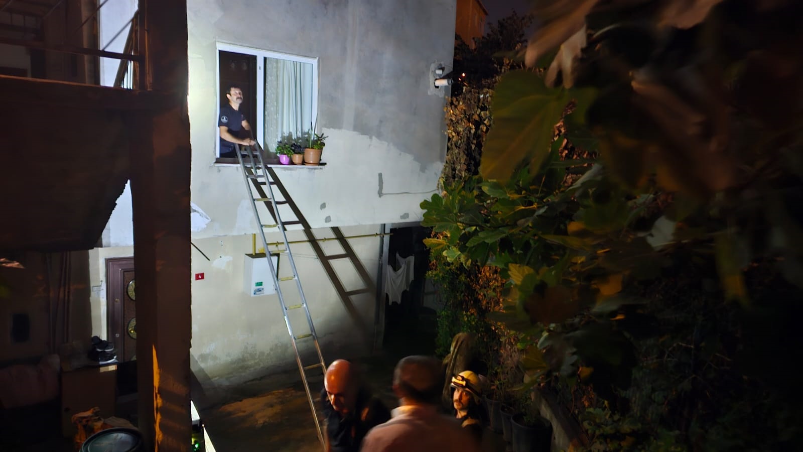 İtfaiye ekipleri binada yaşayan 21 vatandaşı tahliye ederken, bölgede güvenlik çemberi oluşturuldu.