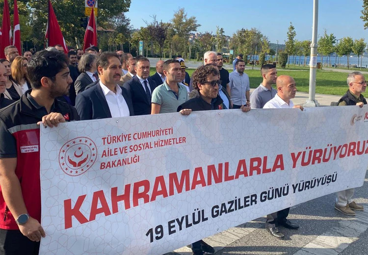 Yürüyüş sonrası Beykoz Belediyesi önündeki Atatürk Anıtına çelenk bırakıldı. Kaymakam Faik Oktay Sözer’in ardından Beykoz Belediye Başkanı Alaattin Köseler ve sırasıyla diğer idari amirler 19 Eylül Gaziler Günü için çelenk surumu yaparak, Ata’yı selamladı.