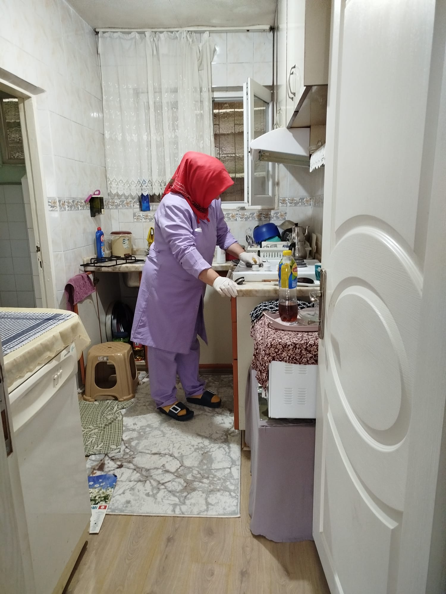 Sosyal yardım işleri ekipleri belediyeye kayıtlı evleri aylık periyotla ziyaret ederek yaşlıların yaşam alanlarını ter temiz yapıyor.