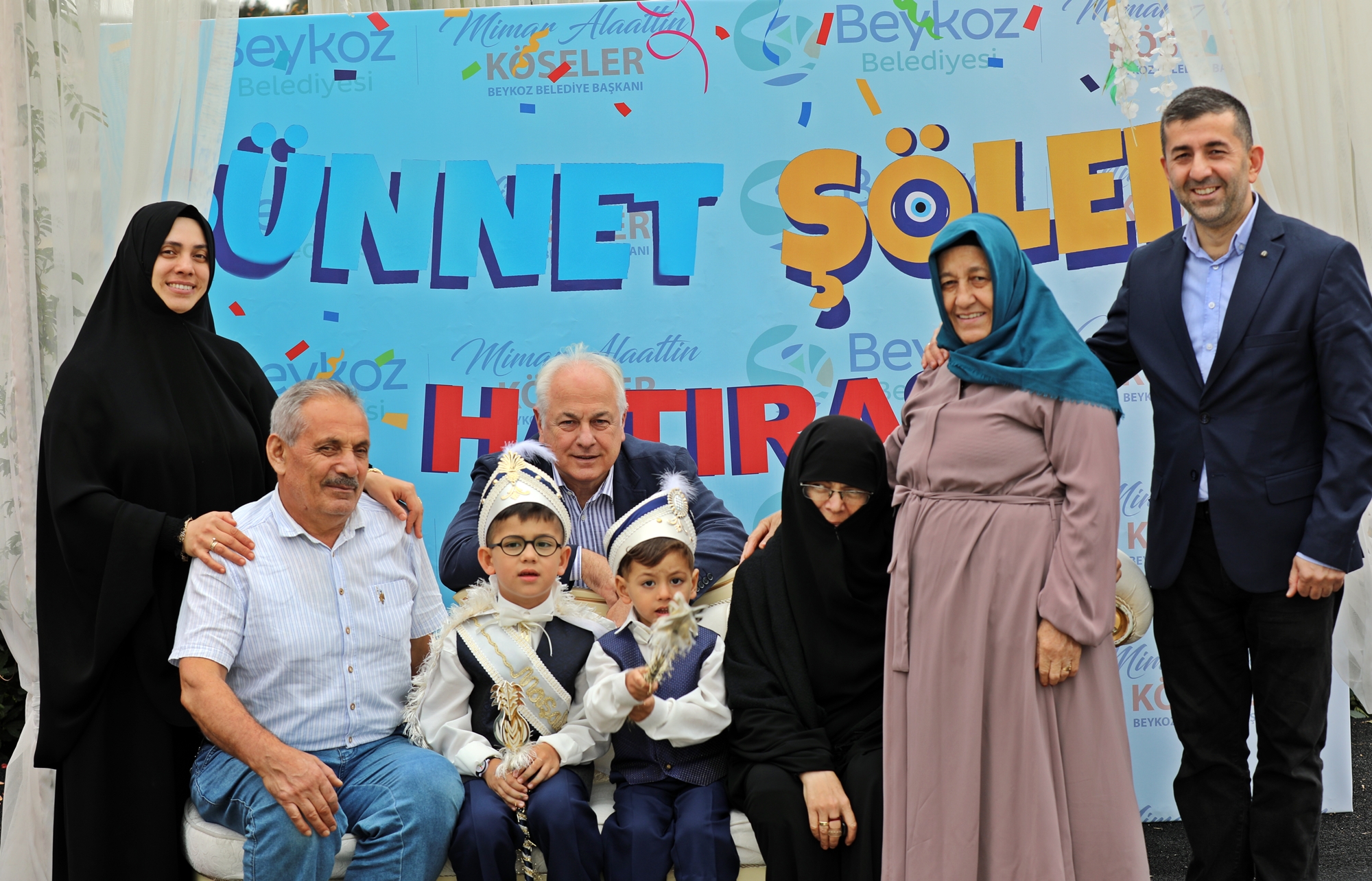 Sünnet şöleni sonunda Beykoz Belediye Başkanı Alaattin Köseler ve eşi Firdevs Köseler ile birlikte Başkan Yardımcıları Taner Aksu, Fidan Gül ve Bilgehan Murat Miniç, sünnet olan çocuklarla hatıra fotoğrafı çektirildi. Ailelerin yoğun katılımıyla gerçekleşen etkinlikte, çocuklar unutulmaz bir gün yaşadı.