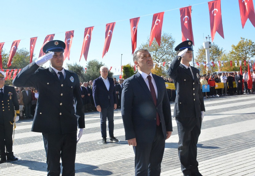 Çelenk sunma töreni öncesi 29 Ekim’i anlamını ve Mustafa Kemal Atatürk’ün filizlerini ektiği Türkiye Cumhuriyeti’ni Barbaros Hayrettin Paşa Mesleki ve Teknik Anadolu Lisesi Tarih Öğretmeni Sinan Saim Aydın anlattı.