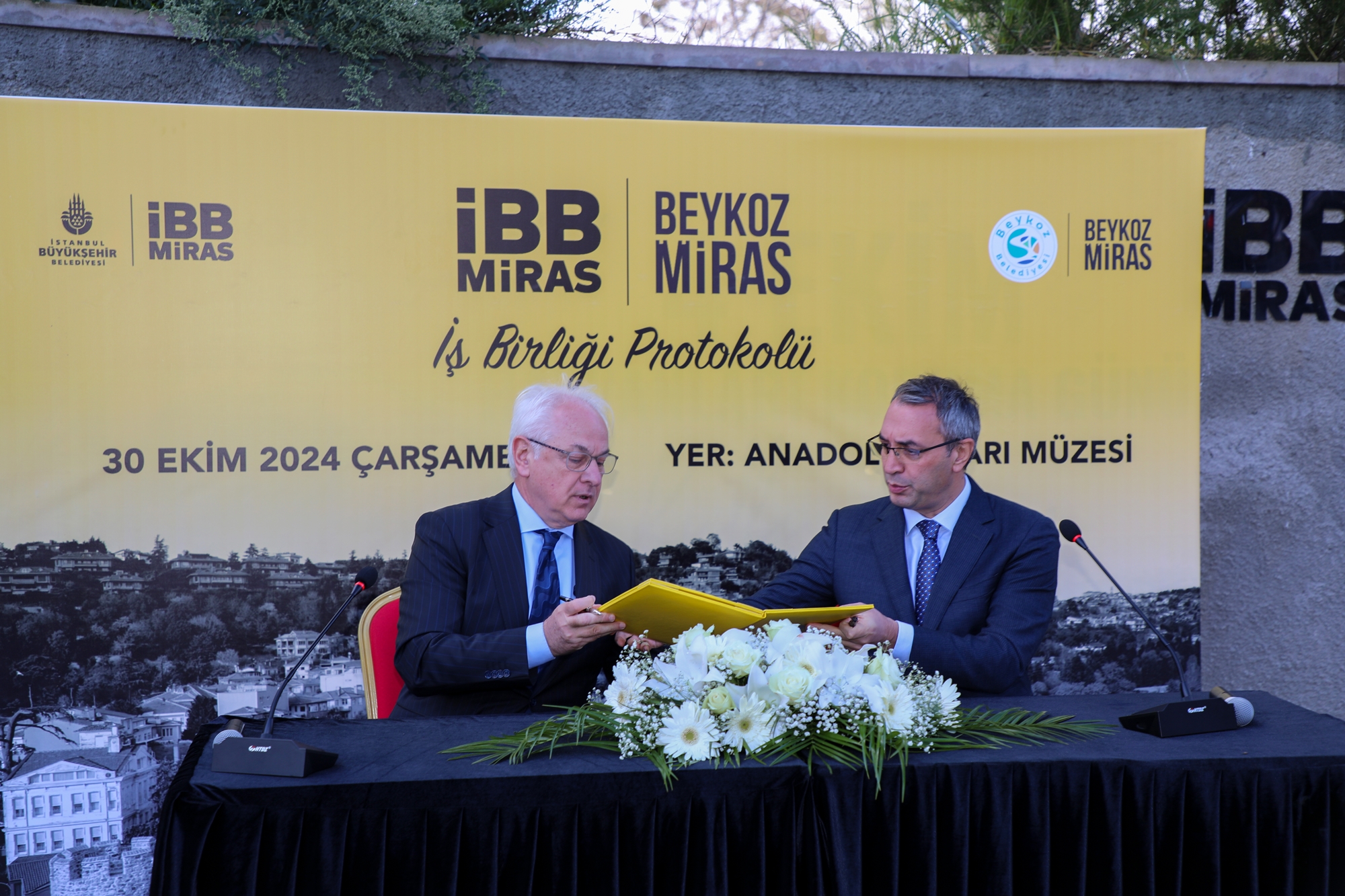 Törende konuşmaların ardından, Başkan Alaattin Köseler ile Mahir Polat, İBB Miras ile Beykoz Belediyesi arasında tarihi ve kültürel mirasın ortak projelerle korunması amacıyla iş birliği protokolüne imza attı.