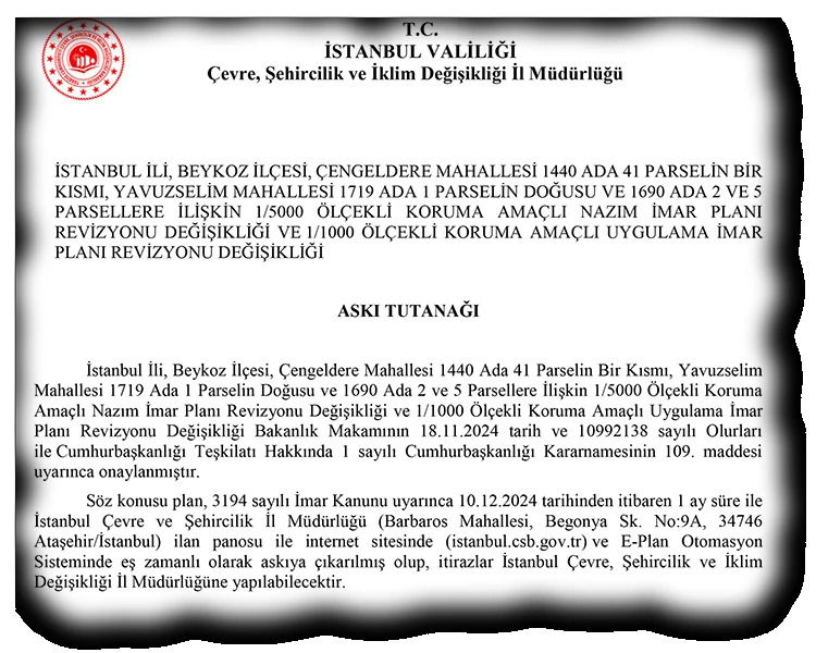 Beykoz Çavuşbaşı’na yıkılan Mesleki Teknik Anadolu Lisesi, Anadolu İmam Hatip Lisesi ve Beykoz Anadolu Lisesi alanı için yeni planlar askıya çıkarıldı.