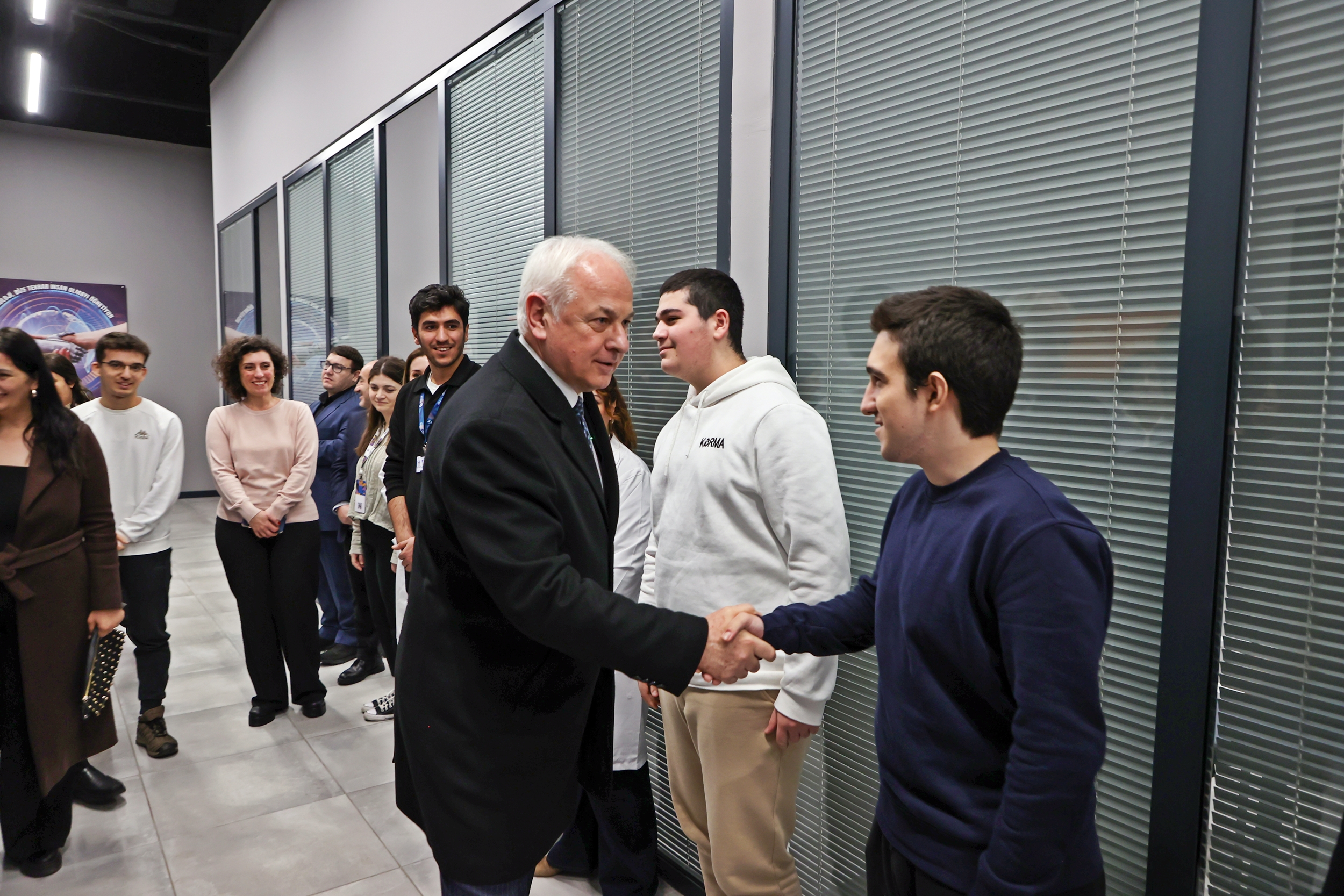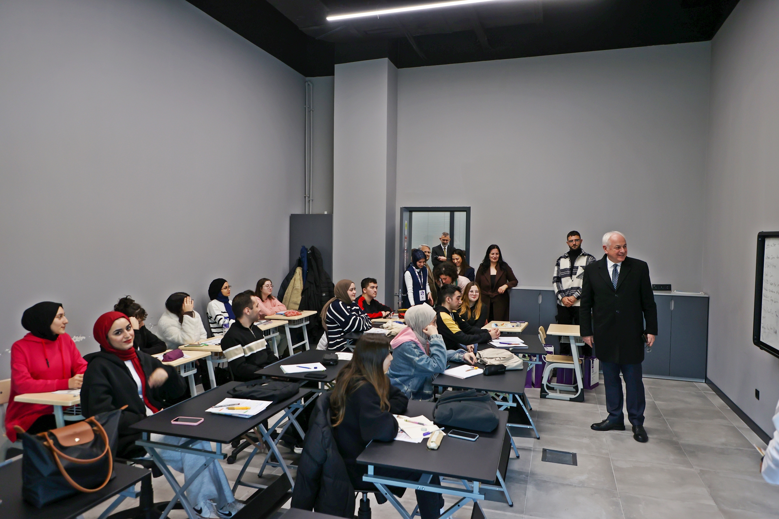 Kitap dağıtımının ardından Başkan Alaattin Köseler, öğrencilerle onların gelecek planları üzerine sohbet etti.