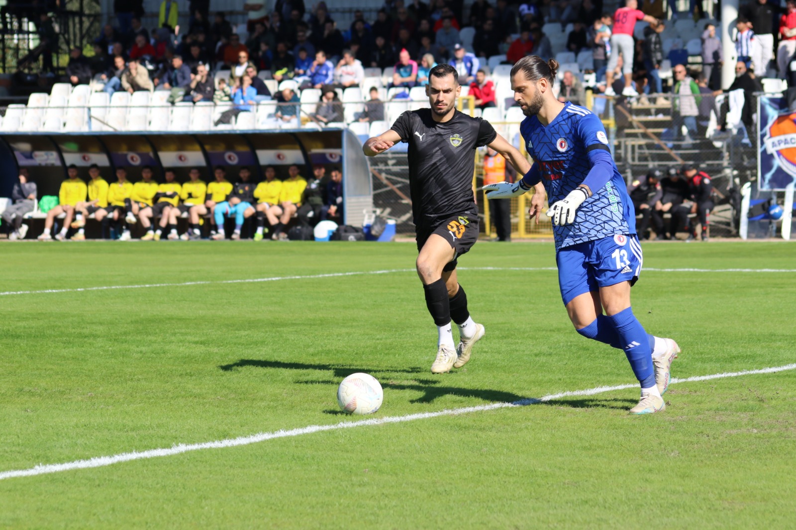 Dk.21 Sağ tarafta kapılan topu süren Serdar Ümit Deniz ceza alanına girdi vuruşunu Kaleci Utku çıkardı bir kez daha aynı ismin vuruşunda top filelerle buluştu 1-0