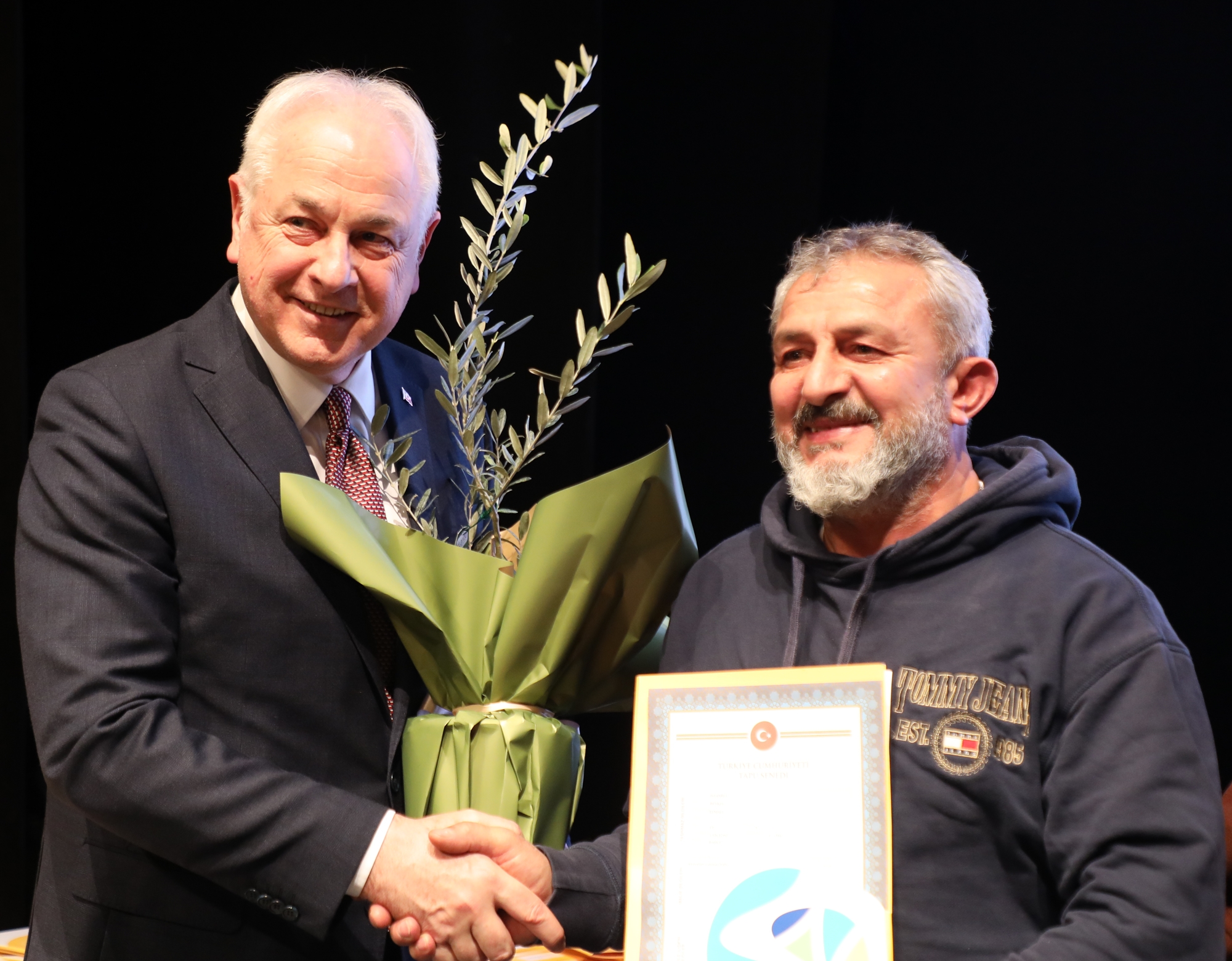 Başkan Köseler’in konuşmasının ardından hak sahiplerine tapuları takdim edildi. Tapuları eşi Firdevs Köseler, başkan yardımcıları ve birim müdürleri ile birlikte hak sahiplerine takdim eden Beykoz Belediye Başkanı Mimar Alaattin Köseler, bereketi temsil eden zeytin ağacı fidesi de armağan ederek tapuların hayırlı olmasını diledi.