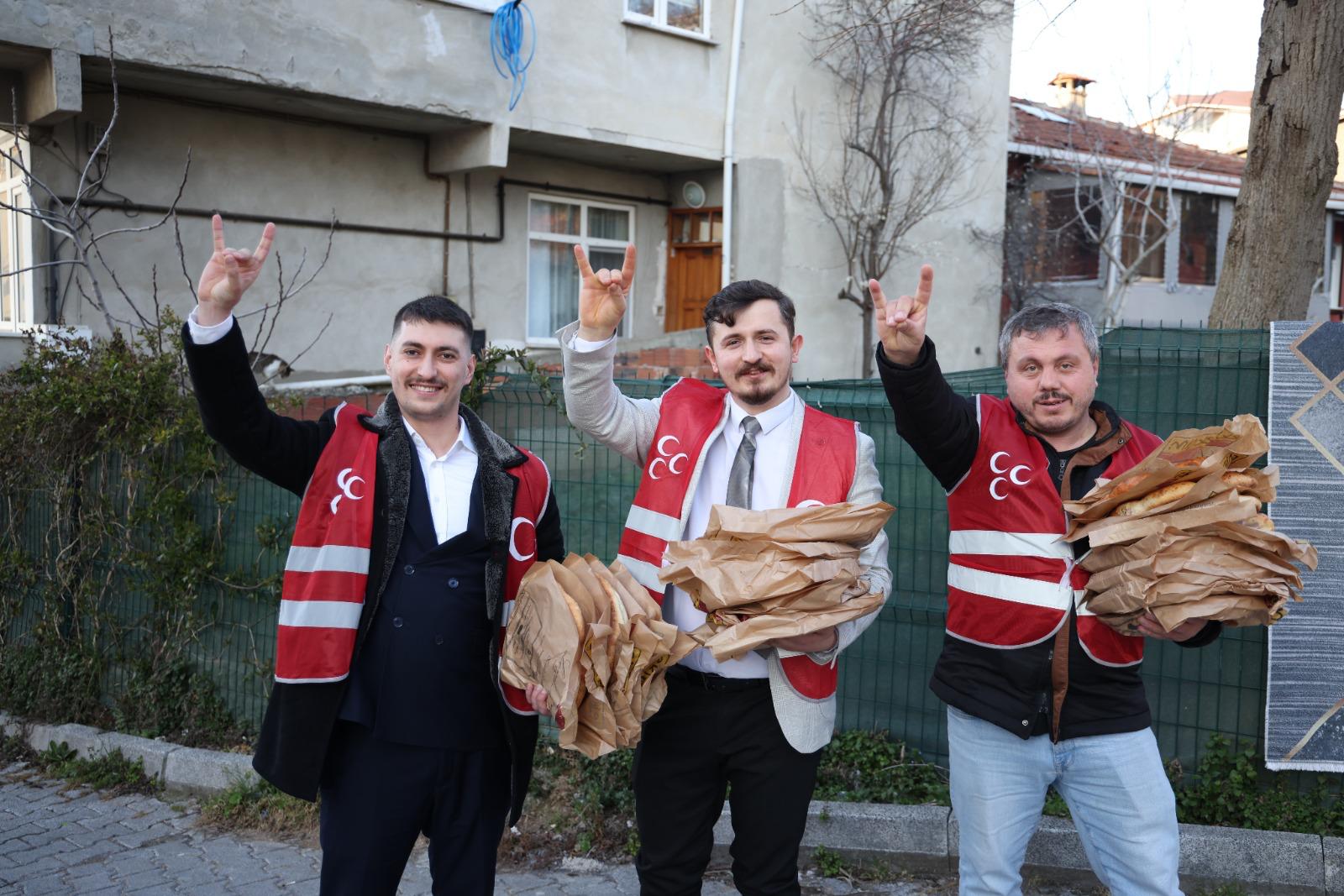 “Ramazan Paylaşmaktır” anlayışıyla hareket eden MHP Beykoz, Ramazan iaşeleri ve alışveriş kartı dağıtımlarının yanı sıra, “İftara 1 Kala Kapınızı Çalıyoruz” sloganıyla mahallelerde vatandaşlara iftar pidesi ikramında bulunuyor.
