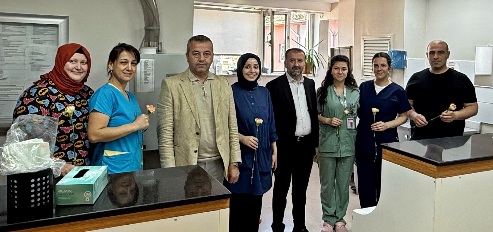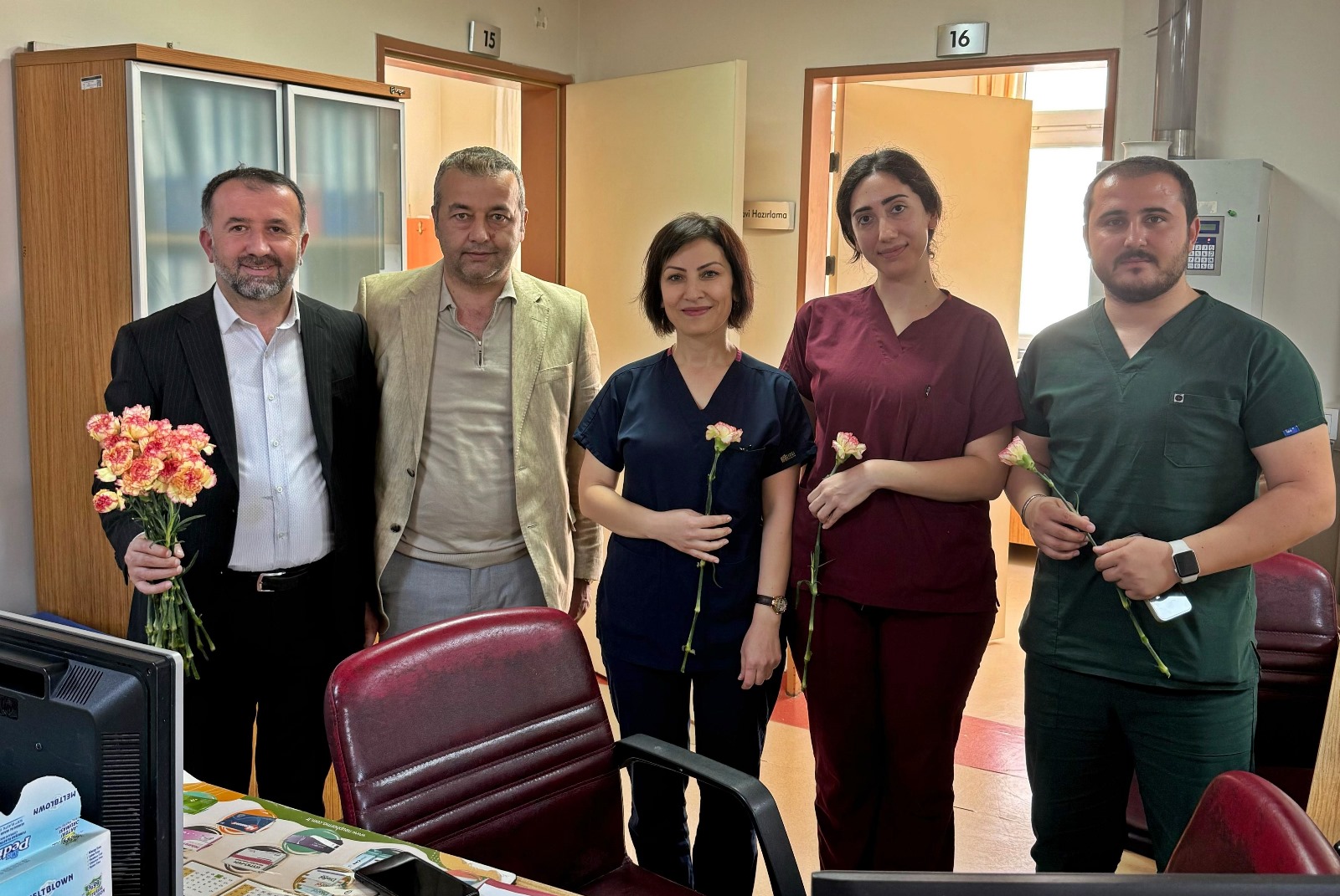 Ziyaretin devamında hastane personeli tek tek ziyaret edilerek 14 Mart Tıp Bayramı kutlandı ve emekleri için teşekkür edildi.