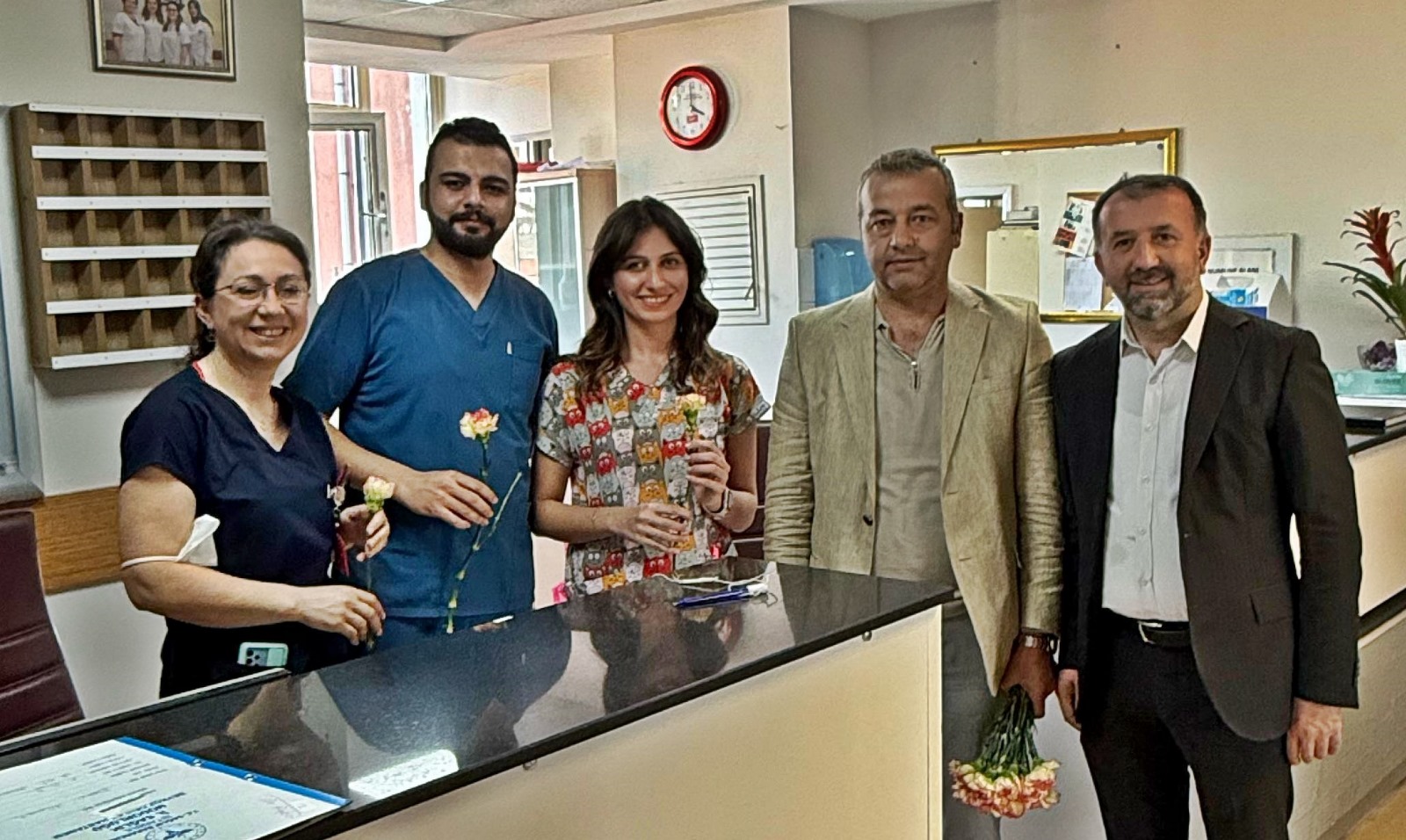 Birlik adına Dönem Başkanı Sezayi Biçer ve Dönem Sekreteri Hayati Soylu tarafından gerçekleştirilen ziyarette, sağlık çalışanlarına günün anısına çiçek takdim edildi.