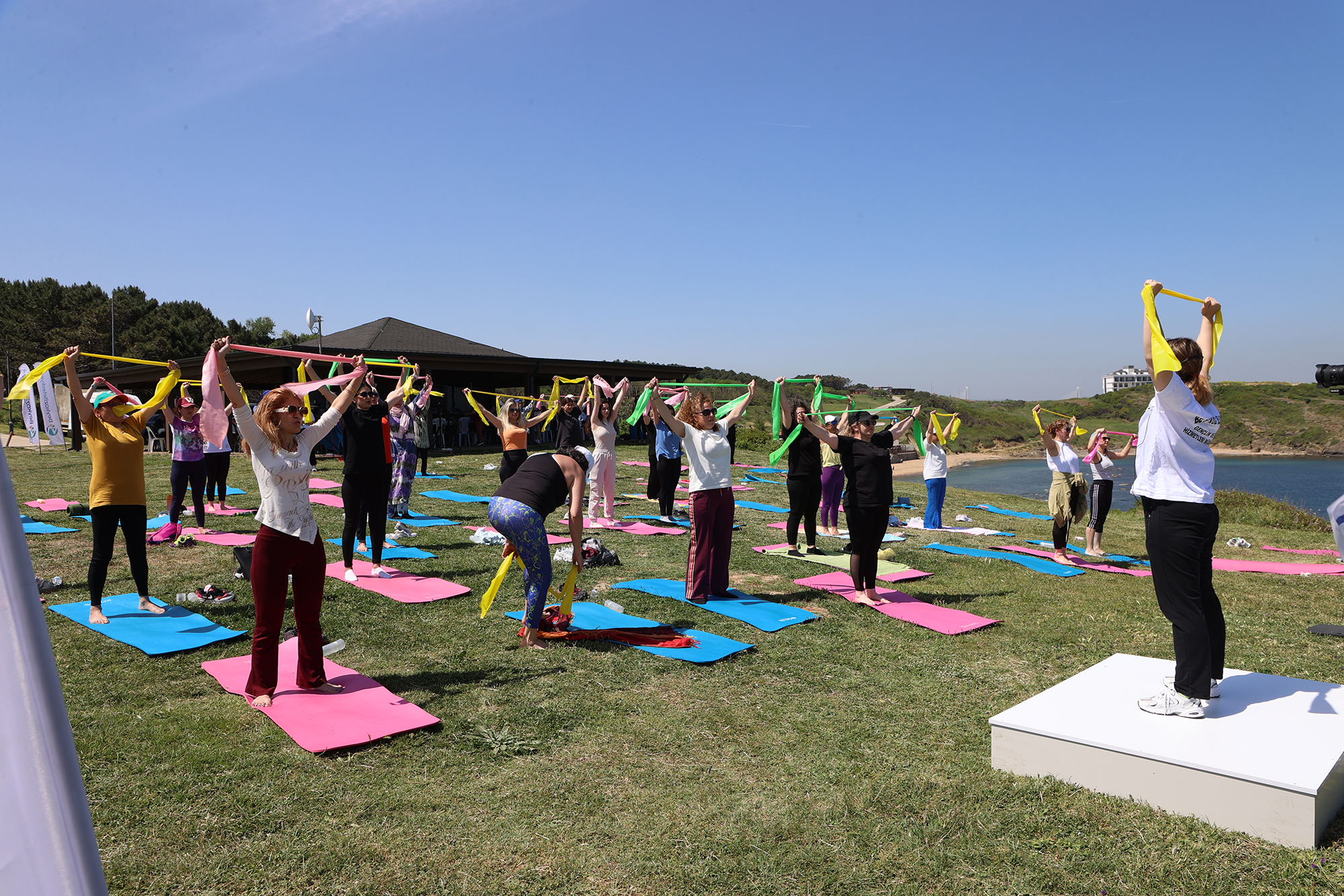 Etkinliğe yoğun ilgi gösteren katılımcılar, çimlerin üzerine serdikleri matlarda temiz hava eşliğinde bedensel ve zihinsel rahatlama yaşadı.