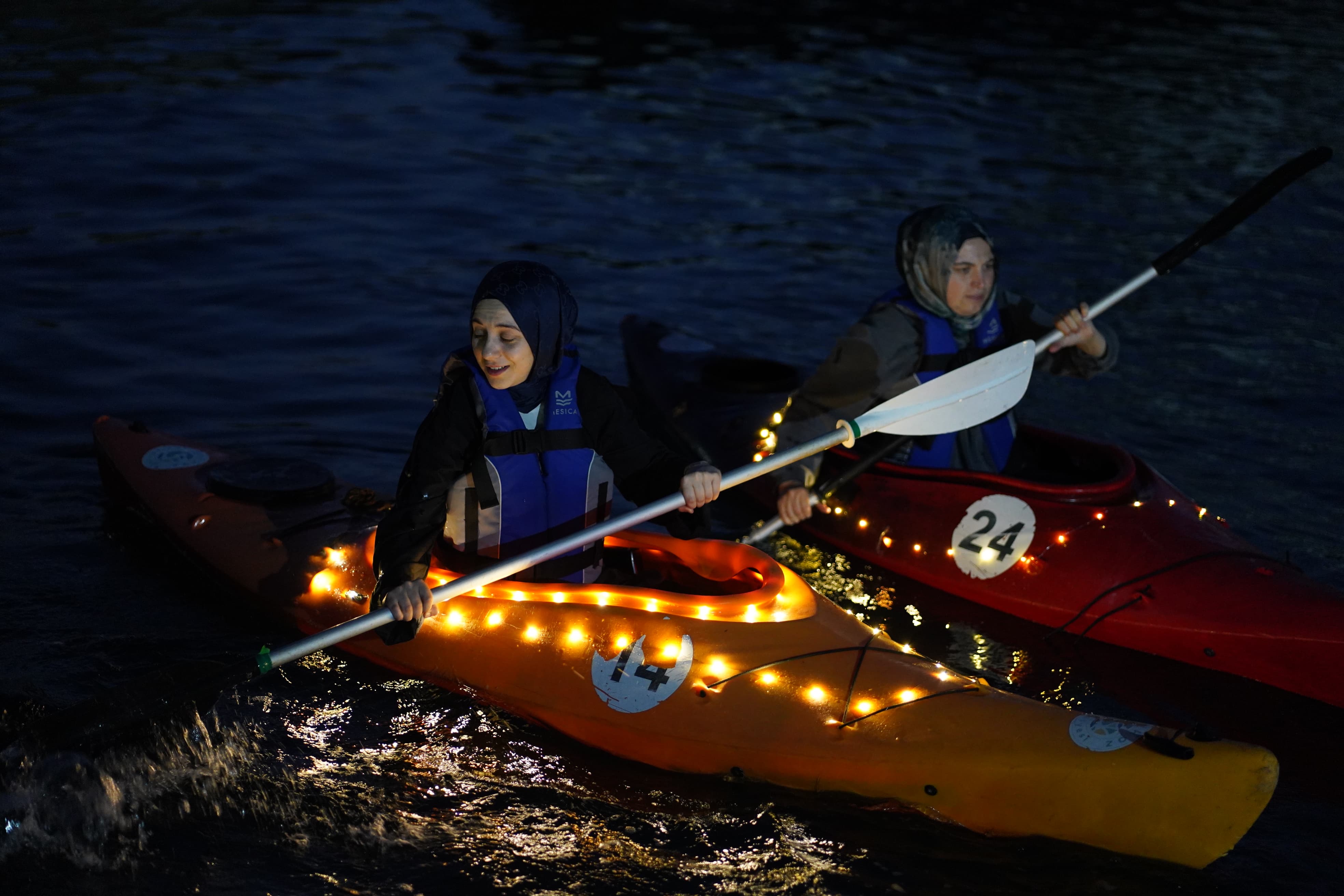 Beykoz Belediyesi, doğayla iç içe sağlıklı yaşam etkinliklerine bir yenisini daha ekleyerek ilçe sakinlerine unutulmaz bir deneyim yaşattı. Dolunay’ın büyüleyici atmosferinde düzenlenen Yoga ve Kano Etkinliği, Beykoz’un iki eşsiz noktasında doğaseverleri bir araya getirdi.Etkinliğin kano ayağı, Beykoz Sahili’nde bulunan belediyeye ait Su Sporları Merkezi’nde gerçekleşti. Katılımcılar, dolunayın suya yansıyan huzur verici ışığında kürek çekerek İstanbul boğazının eşsiz manzarasında hem spor yaptı hem de doğayla bütünleşti. Profesyonel eğitmenler eşliğinde düzenlenen etkinlikte, her gruba tek tek ön eğitim verildi. Kanolara takılan ışıklar ile birlikte güzel görüntüler ortaya çıktı.Boğazın Işıltısında Kürek Çektiler